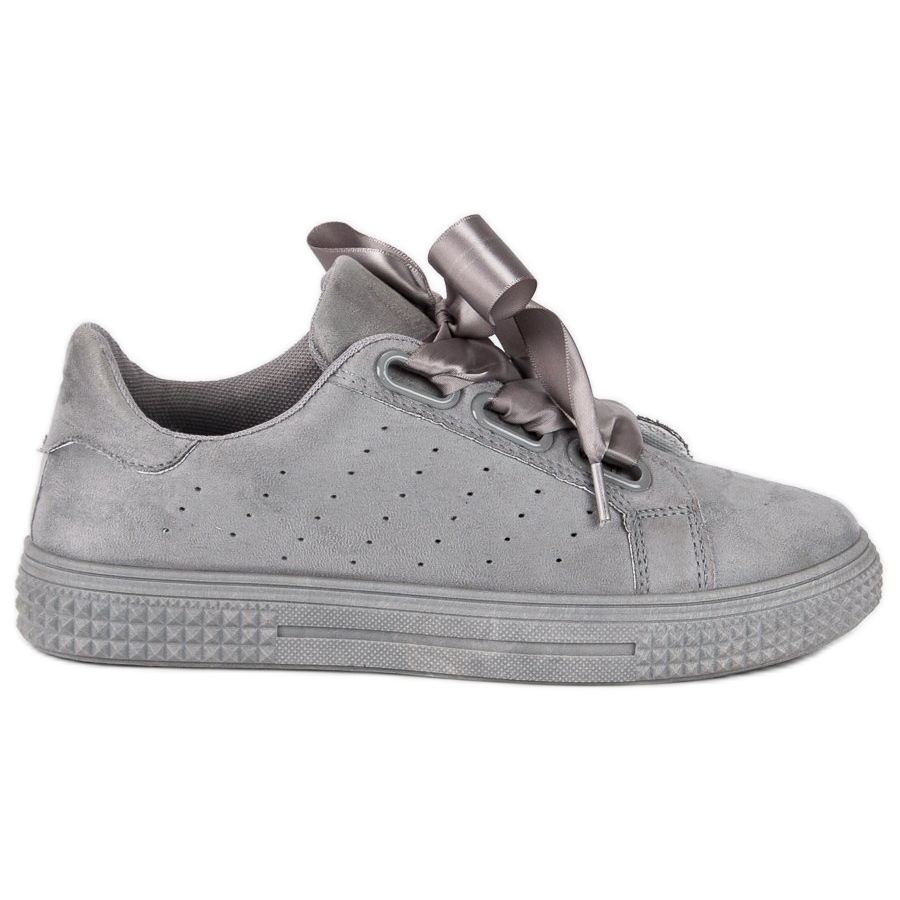 Durch ihre hellgraue Farbe lassen sie sich leicht zu vielen verschiedenen Outfits kombinieren. Glänzende silberne Schnürsenkel und ein durchbrochenes Muster an den Seiten verleihen den Schuhen einen einzigartigen Charakter, sodass Sie mit Sicherheit alle Blicke auf sich ziehen.