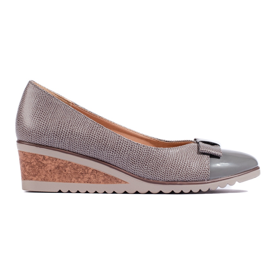 Elegante und bequeme Pumpen W. Potocki, die Klassiker mit alltäglichem Komfort kombinieren. Das Modell in einem gedämpften grauen Farbton mit einem zarten, lackierten Finish und einem subtilen Bogen funktioniert sowohl für die Arbeit als auch für besondere Anlässe.