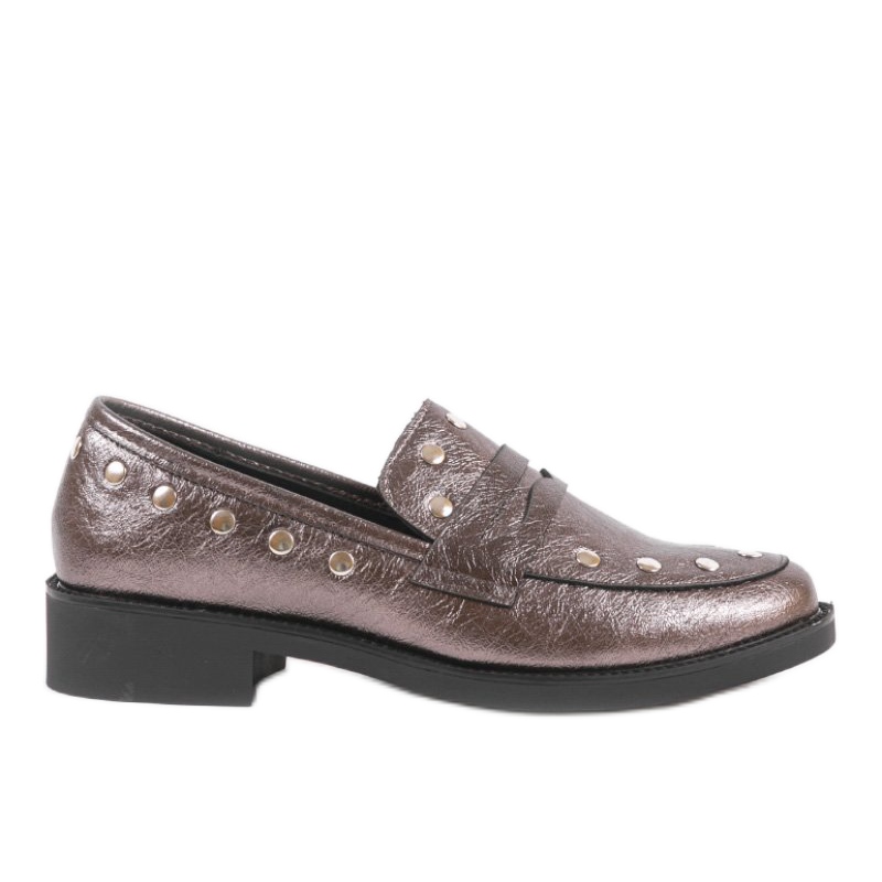 Wir präsentieren die grauen Damenschuhe C18-6297, die Eleganz und Komfort vereinen. Diese Slipper aus hochwertigem lederähnlichem Material passen perfekt zu aktuellen Modetrends. Dekorative runde Metalleinsätze verleihen ihnen Originalität und dezenten Glanz und machen sie zu einer perfekten Ergänzung zu vielen Stilen.