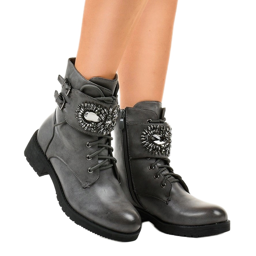 Details: Graue Damenstiefel mit Schnalle und Diamanten 0-251