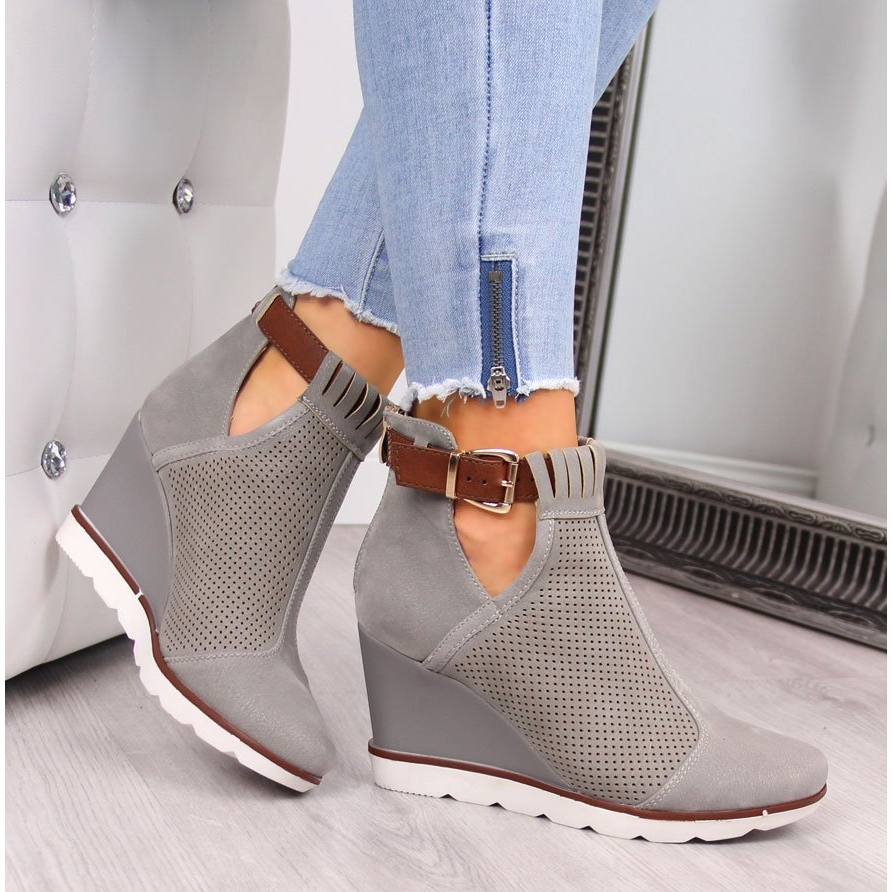 Details: Graue, durchbrochene Turnschuhe mit Keilabsatz von Filippo