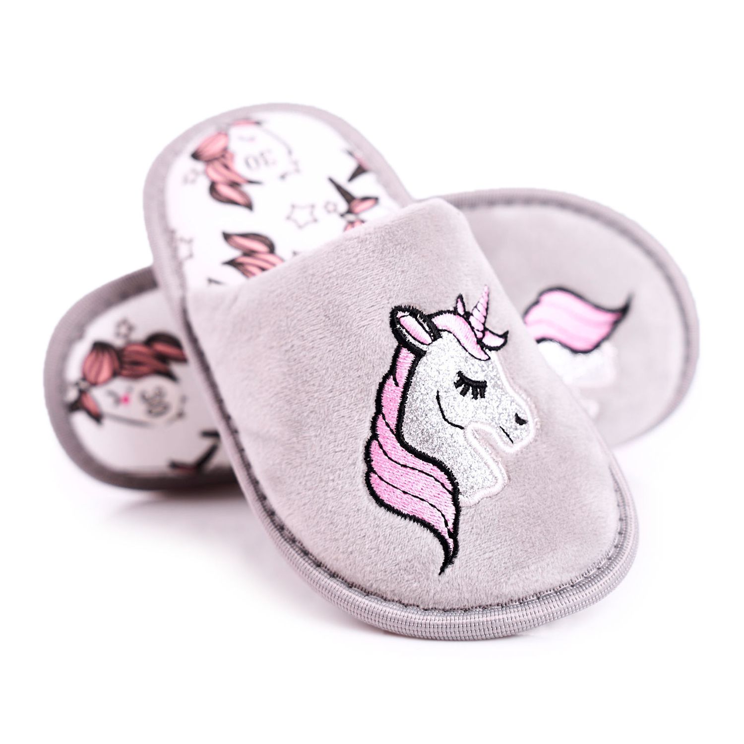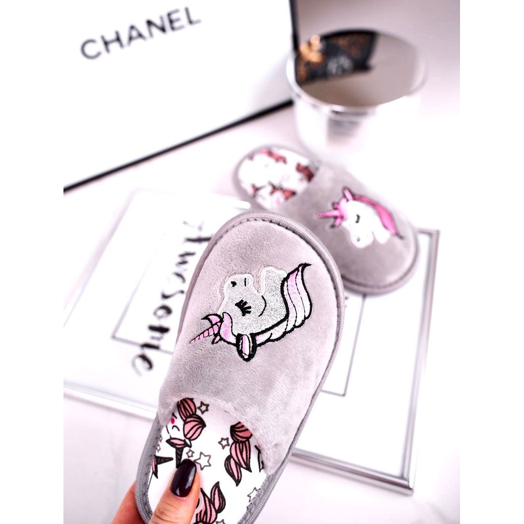Inna marka Graue Einhorn Hausschuhe für Kinder mit Einhorn rosa silber-