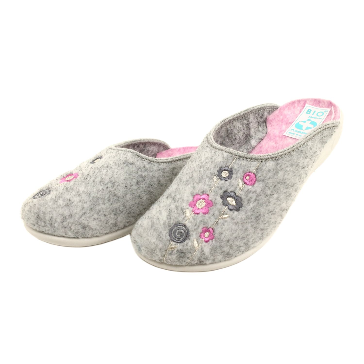 Gray Filz Pantoffers Adanex 27885 Sara mit Blumen - eine Kombination aus Komfort und charmantem Muster. Das weiche, warme Filz schließt sanft den Fuß, und die subtile graue Farbe, die mit rosa Blumen geschmückt ist, verleiht dem häuslichen Schuhe weibliche Charakter. Dies sind die perfekten Hausschuhe für diejenigen, die nach einem Tag in High Heels oder schweren Schuhen Ihre Füße ruhen lassen wollen, ohne den Stil aufzugeben.