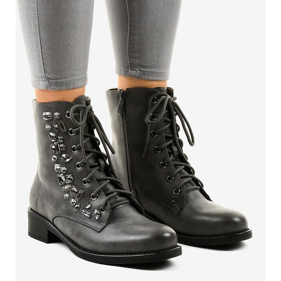 Inna marka Graue flache Stiefeletten mit Steinen 0-268