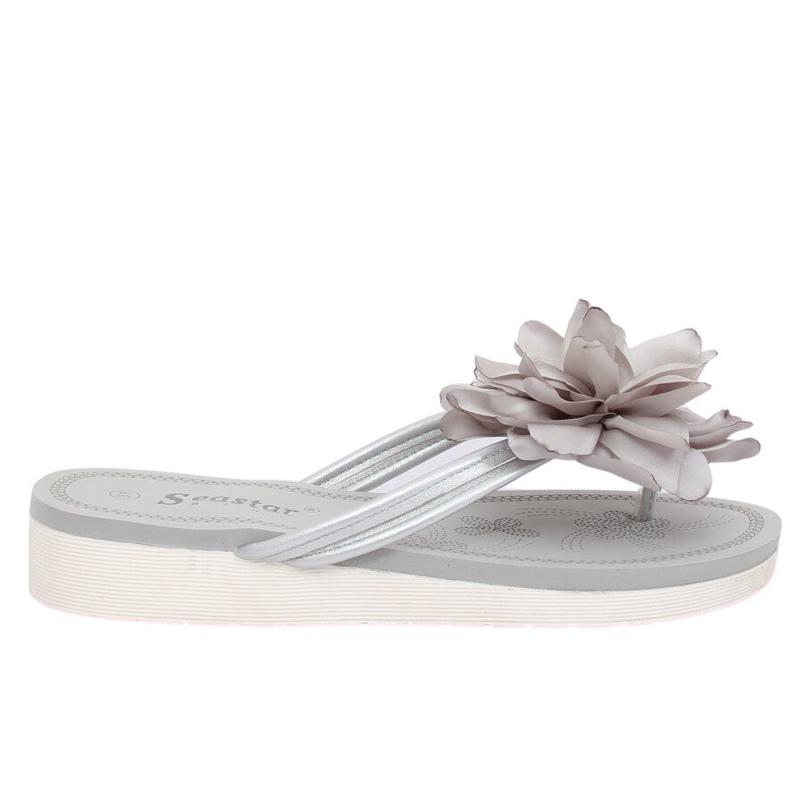 Inna marka Graue Flip-Flops mit Blume CK103 Grau