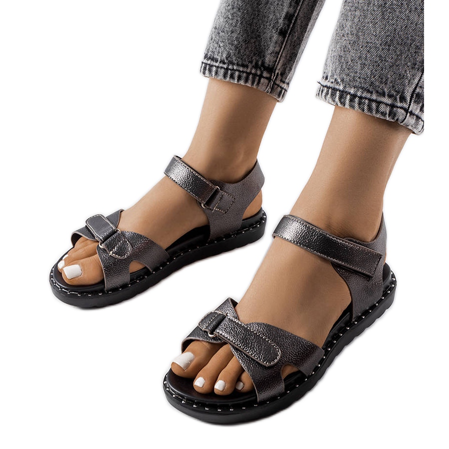 Wir präsentieren grau glänzende Bellefeuille-Sandalen, die Eleganz mit außergewöhnlichem Komfort verbinden. Diese klassischen Damensandalen zeichnen sich durch ein modernes Design im Farbton GUN COLOR aus, der perfekt zu den Sommertrends passt. Sie bestehen sowohl auf der Außenseite als auch im Einsatz aus hochwertigem ökologischem Leder und garantieren Haltbarkeit und Tragekomfort.