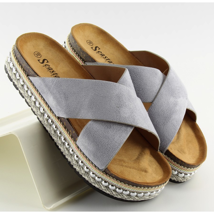 Inna marka Graue graue Damenhausschuhe CK15P grau