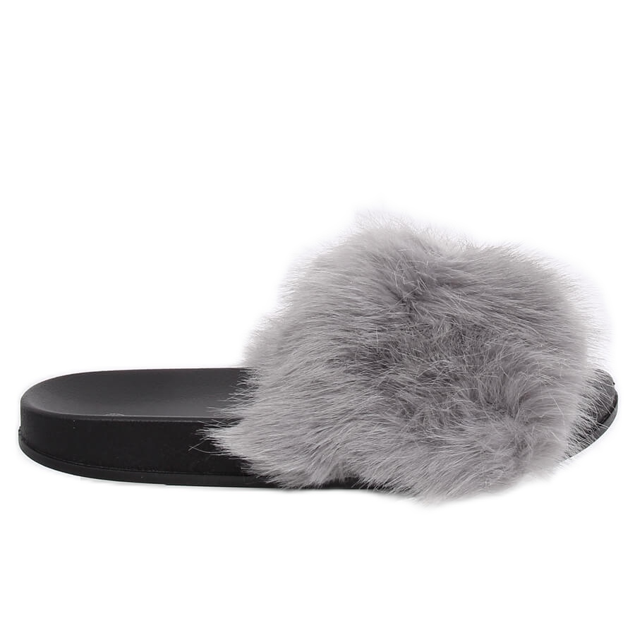 Inna marka Graue Hausschuhe mit Fell CK107P Grau