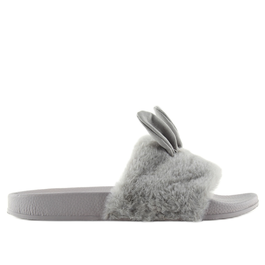 Details: Graue Hausschuhe mit Pelz und beschädigtem Grau 58-21