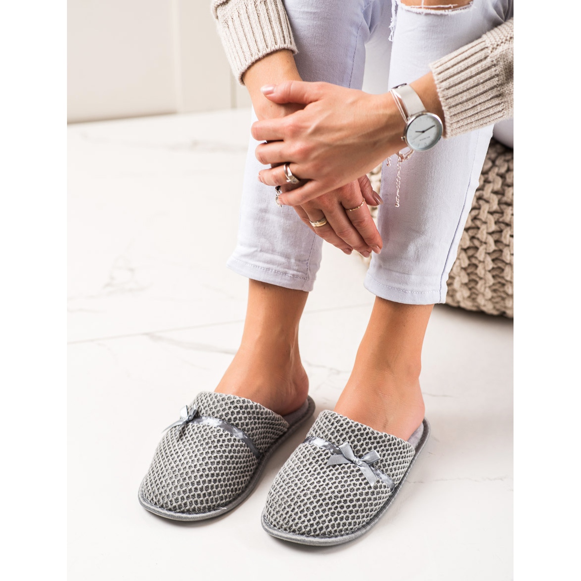 TRENDI TRENDI Graue Hausschuhe mit Schleife silber-