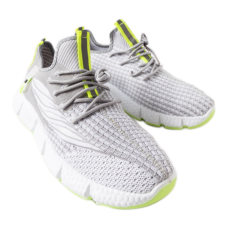 Die runde Spitze setzt einen einzigartigen optischen Akzent und macht das Schuhwerk nicht nur funktional, sondern auch ästhetisch. Das graue Obermaterial bildet in Kombination mit der grünen Sohle ein harmonisches Ganzes und der weiße Zusatz unterstreicht den modernen Charakter der Schuhe. Das Obermaterial und der Einsatz aus Stoff sorgen für Komfort und Atmungsaktivität, was sie zu einer idealen Wahl für viele Gelegenheiten macht.