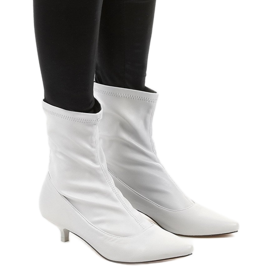 Graue High Heels mit einer Ragemour -Socke - moderne Stiefel mit einem eleganten, schlanken Schnitt. Die Kombination aus einem abgerundeten "Socken" mit einer scharfen Nase erzeugt einen modischen, femininen Look, und eine niedrige "Ente" Ferse (3 cm) sorgt für Stabilität und Komfort, den ganzen Tag zu tragen.