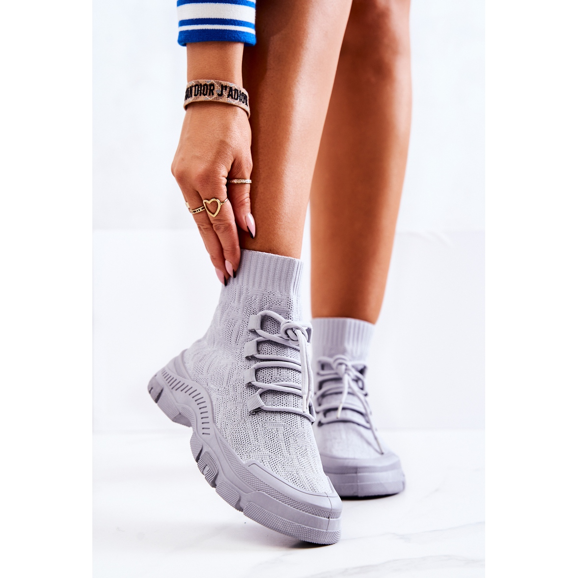 Die grauen Socken-Sportschuhe FM1 sind eine perfekte Kombination aus modernem Design und Komfort, die sicherlich jede aktive Frau ansprechen wird. Sie bestehen aus flexiblem Material und sorgen den ganzen Tag über für eine hervorragende Passform und Tragekomfort. Dank der weichen Innensohle aus Stoff und der Gummisohle genießen Sie Komfort und Schutz vor dem kalten Boden.