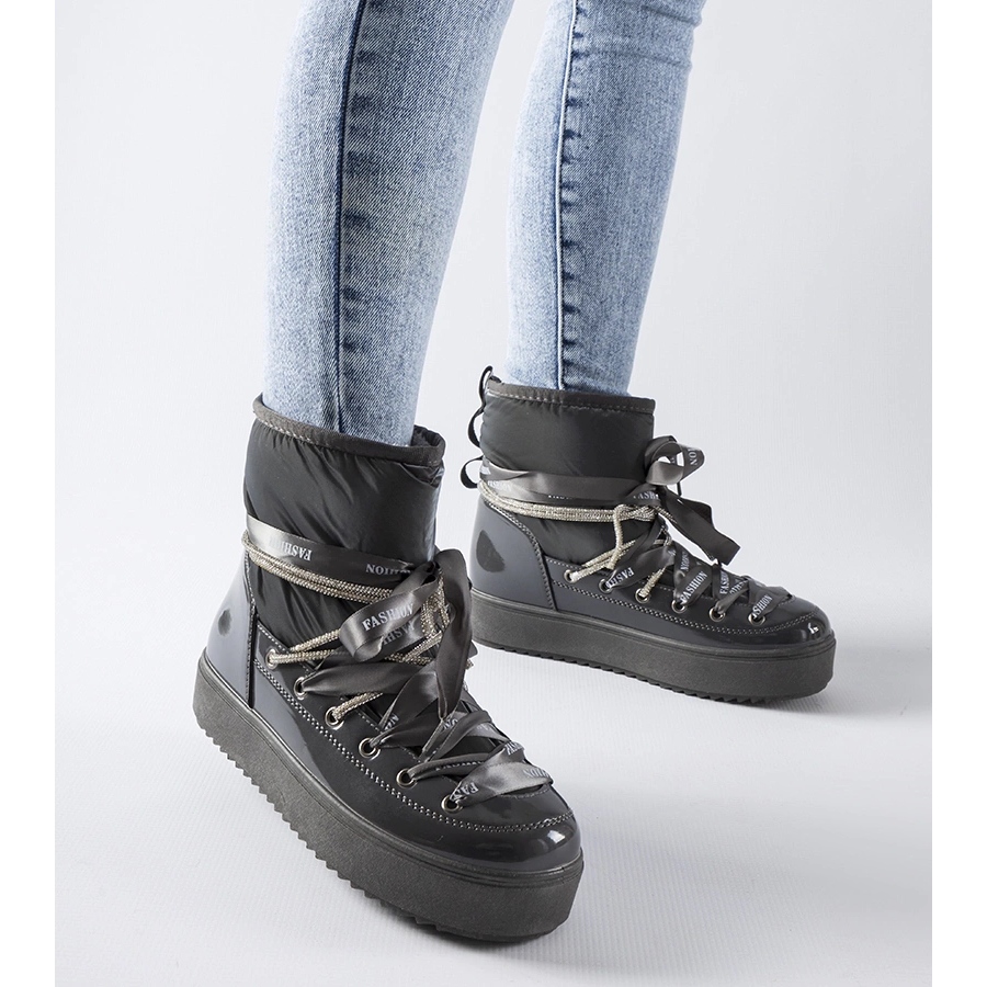 Graue lackierte Alceo -Schneestiefel mit Zirkonen - Stil und warm für den Winter
