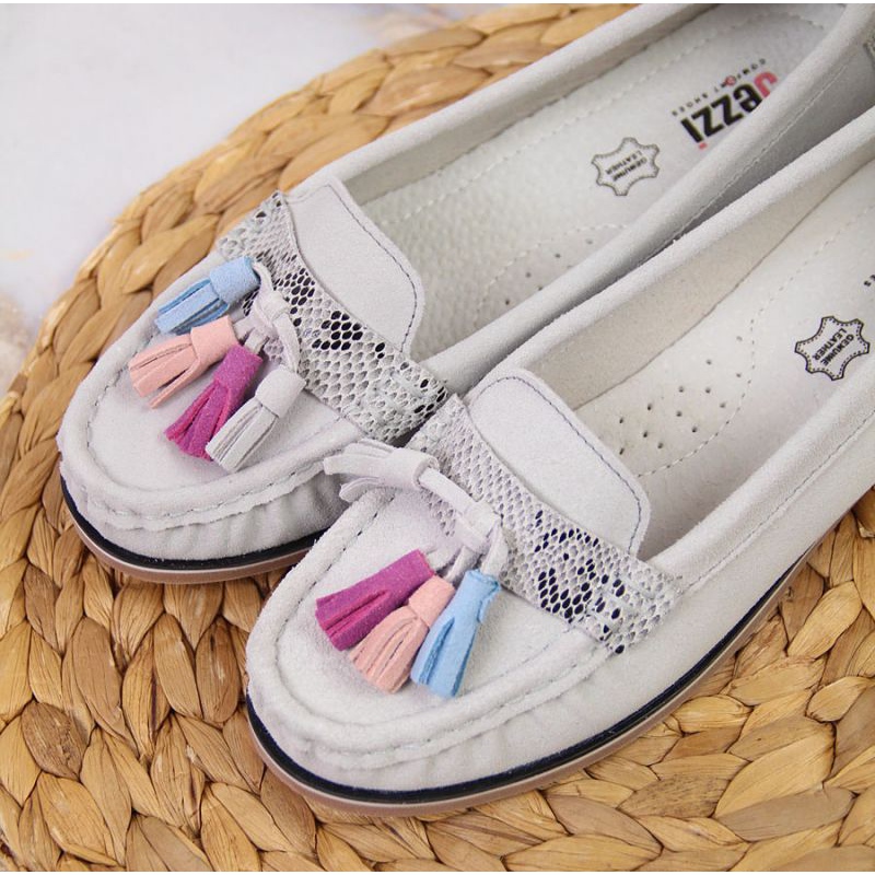 Jezzi W JEZ328B Mokassins mit Fransen in elegantem Grau sind die perfekte Wahl für jede Frau, die Komfort mit modischem Stil verbinden möchte. Diese Halbschuhe sind perfekt für Sommertage und bieten Komfort und Bewegungsfreiheit.