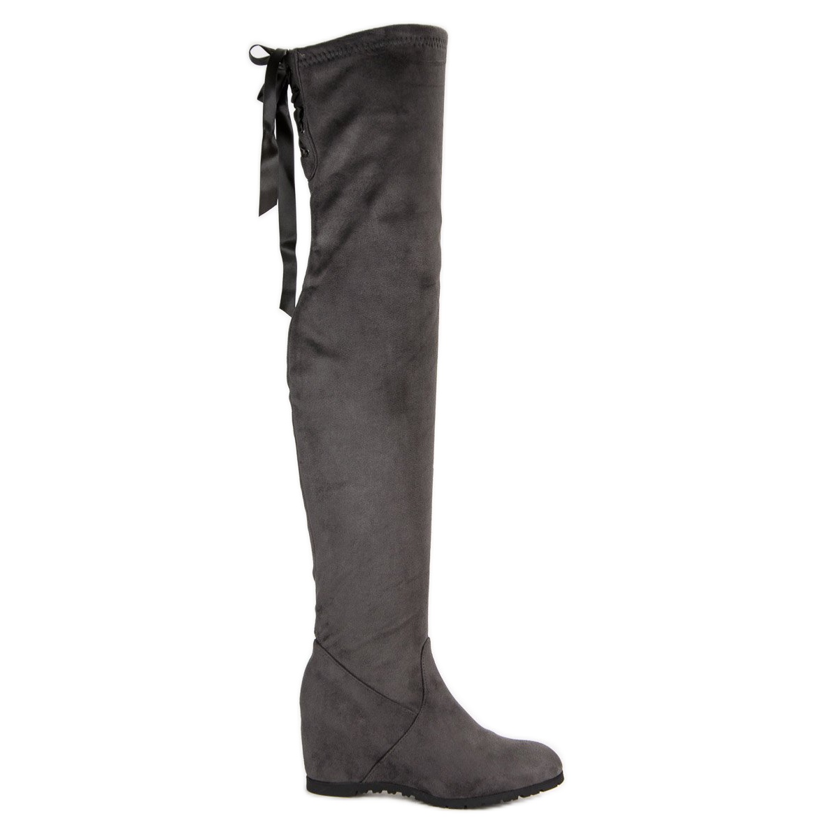 Entdecken Sie Ihren einzigartigen Stil mit grauen Keilstiefeln der renommierten Marke Bestelle. Diese einzigartigen Stiefel greifen die neuesten Modetrends auf und sorgen gleichzeitig für Komfort und Wärme an kalten Herbst- und Wintertagen.