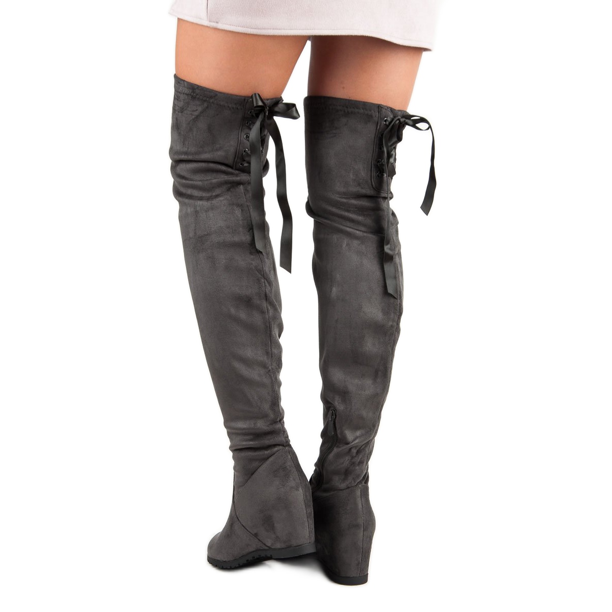 Lassen Sie sich vom Winterwetter nicht entmutigen! Entscheiden Sie sich für Eleganz und Komfort mit den grauen Keilstiefeln von Bestelle, die für viele Saisons zu einem zuverlässigen Element Ihres Stylings werden.