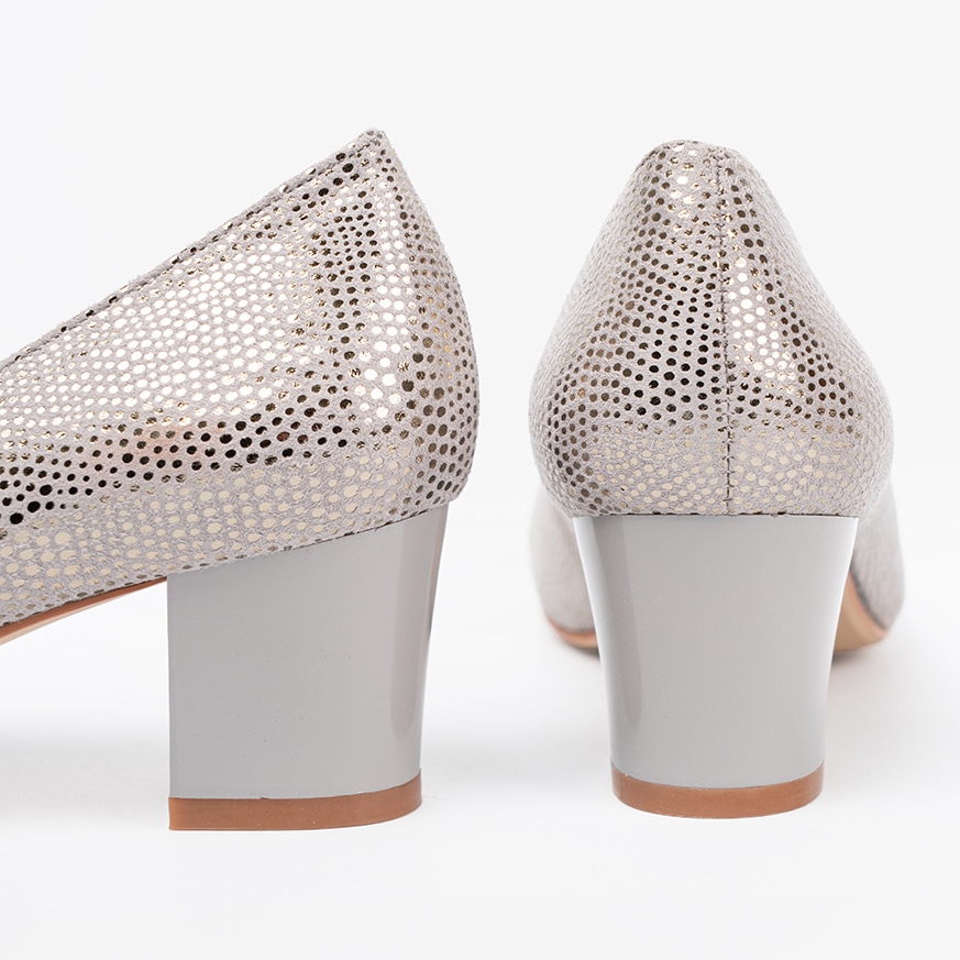 Details: Shelvt Graue Pumpen mit einer Silberdekoration