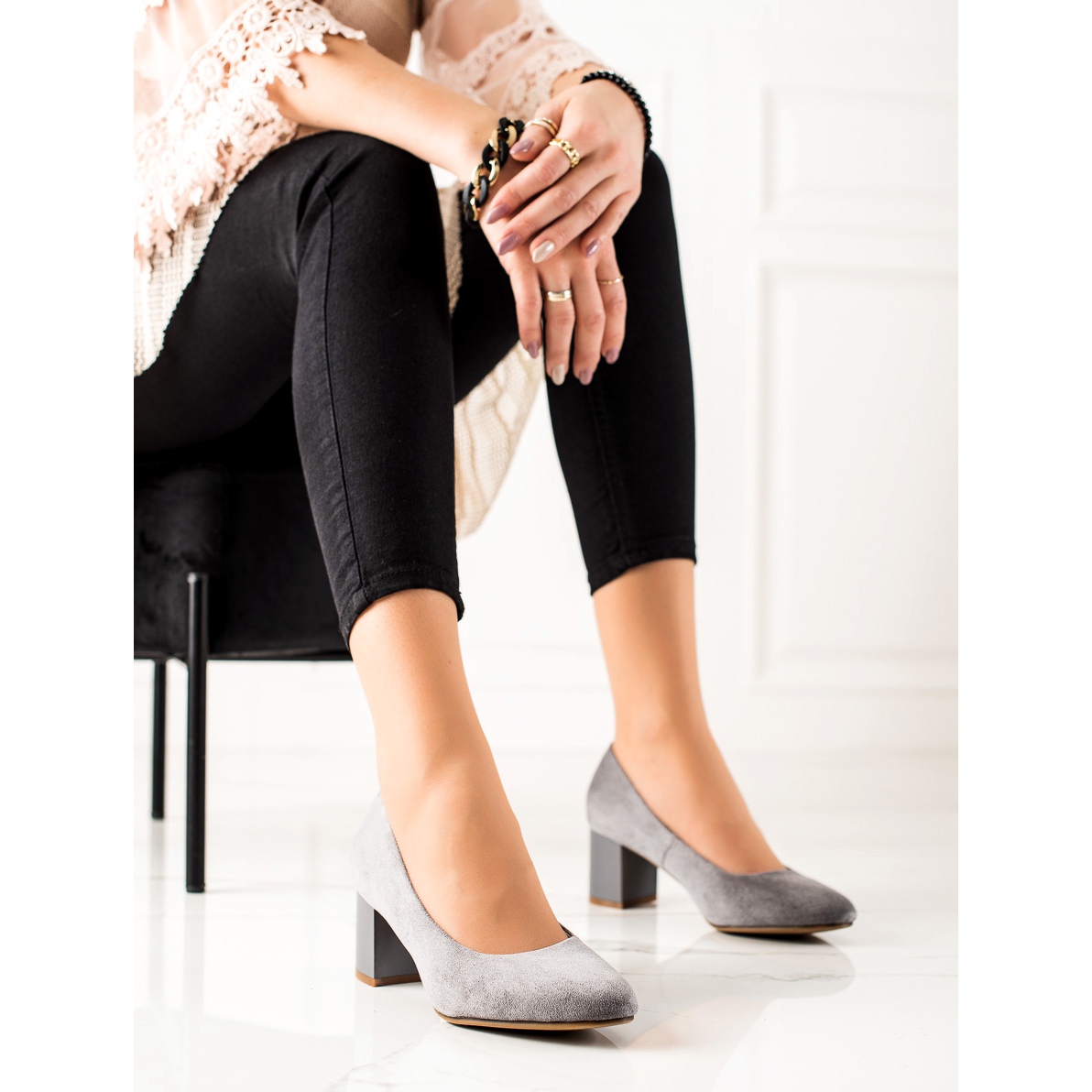 M.Daszyński-Pumps zeichnen sich durch ein klassisches und elegantes Design aus, das sich perfekt für lässige und formelle Stile eignet. Mit der grauen Farbe, die sich leicht mit anderen Farben kombinieren lässt, lassen sich unzählige Styles für jede Jahreszeit kreieren. Ein bequemer 6 cm hoher Blockabsatz ermöglicht Ihnen auch bei längerem Tragen Tragekomfort.
