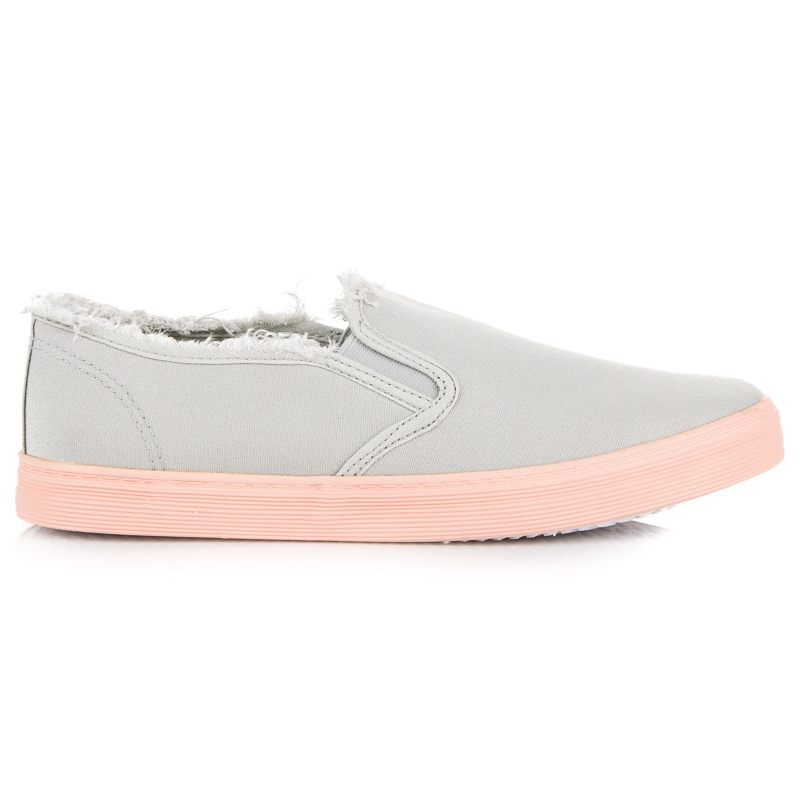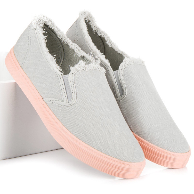 Slipons zeichnen sich durch eine flache Sohle mit Profil in modischem Rosa aus, die dem gesamten Schuhwerk einen einzigartigen Charakter verleiht. Durch die runde Spitze und den eingearbeiteten, weichen Absatz passen sich diese Schuhe perfekt dem Fuß an und bieten ausreichend Halt und Komfort.