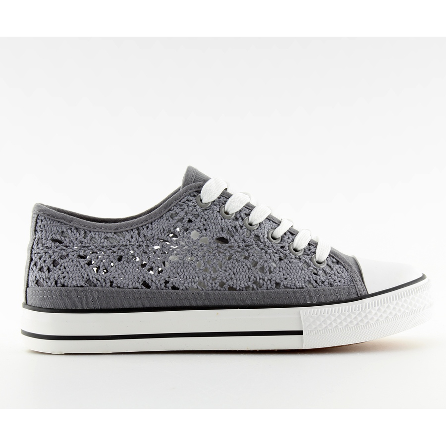Details: Graue Spitzenturnschuhe für Damen NB89P grau