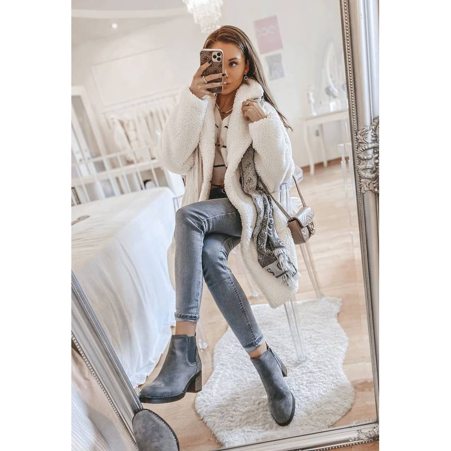 Hanah - graue Stiefel auf dem Post, der jede tägliche Stylisierung ergänzt. Ein klassischer Mandelzeh und ein stabiler Fersentyp (Block) mit einer Höhe von 6 cm sorgen für ein elegantes Aussehen und ein Komfort des Tragens. Hergestellt aus ökologischem Leder mit Wildleder -Finish mit einem praktischen Reißverschluss an der Seite - leicht anzuziehen und abzunehmen. Die weiche Isolierung im Inneren garantiert an kühleren Tagen Komfort, weshalb sie im Frühling und Herbst perfekt arbeiten.