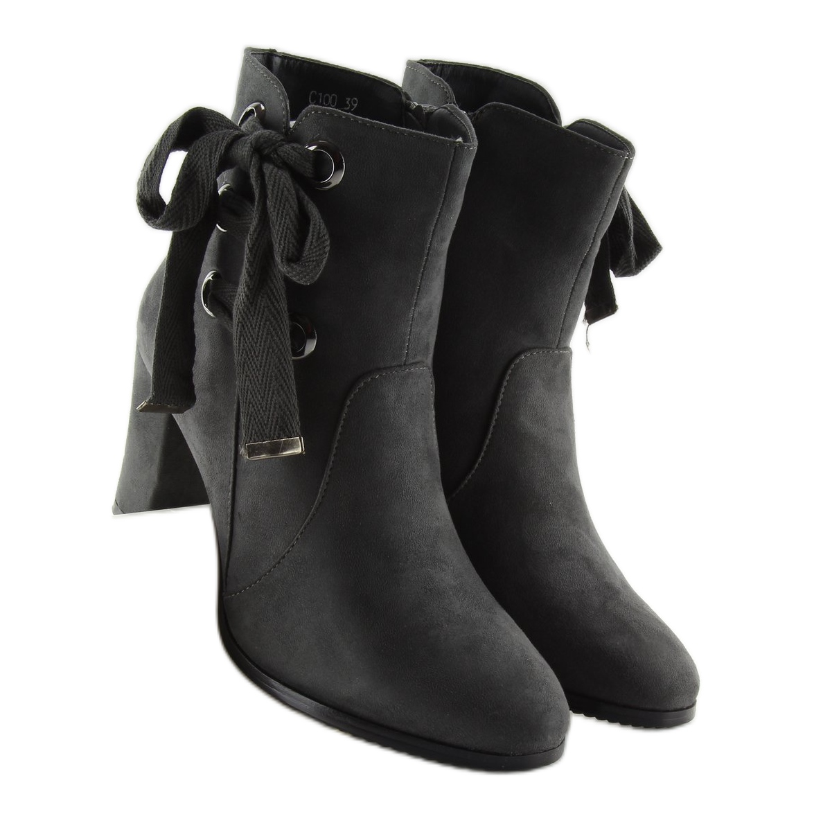 Details: Graue Stiefel mit hohen Absätzen C100 grau