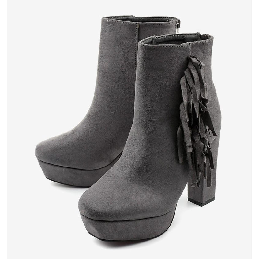 Inna marka Graue Stiefeletten mit Fransen 1272-5