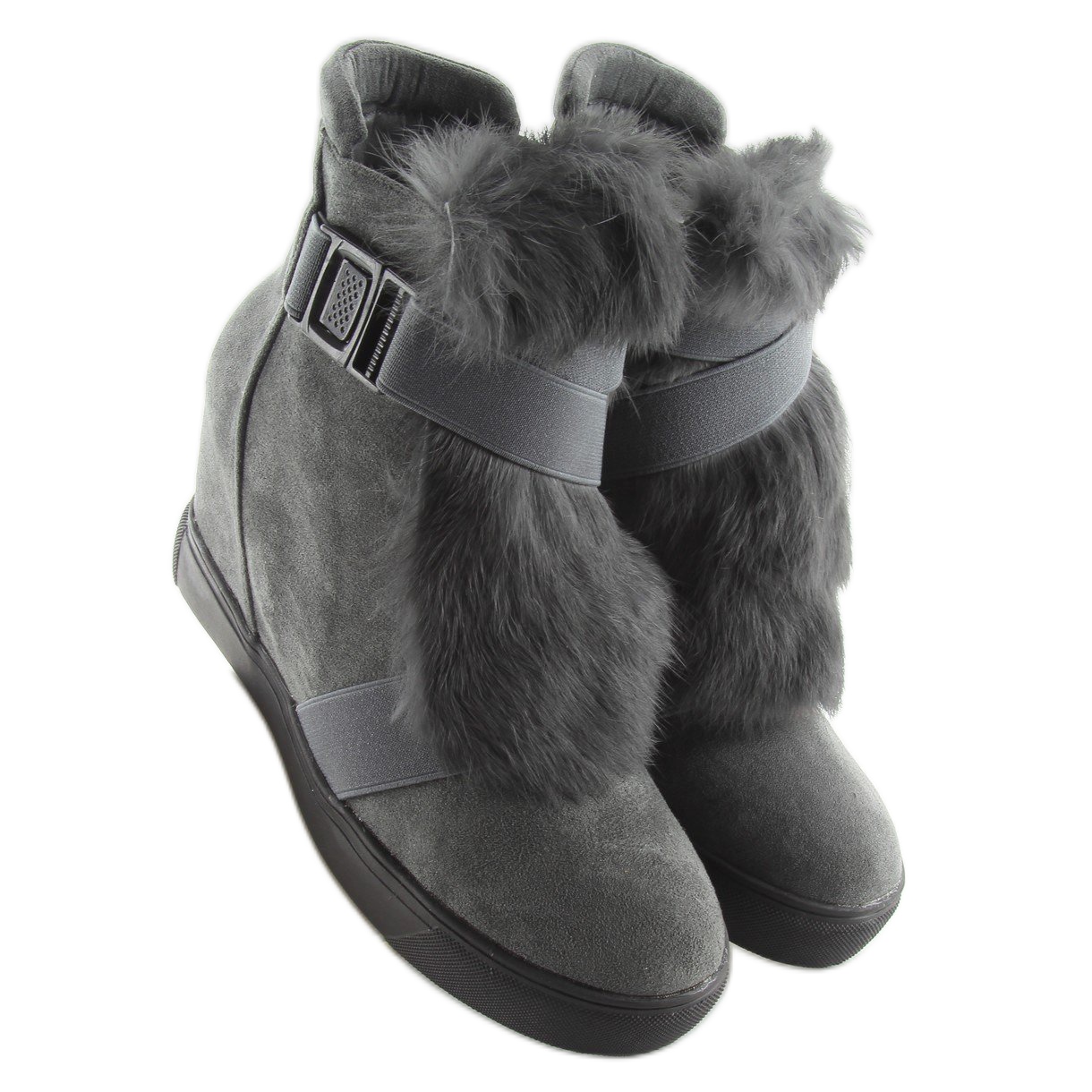 Inna marka Graue Turnschuhe mit Pelz 3123 D. grau