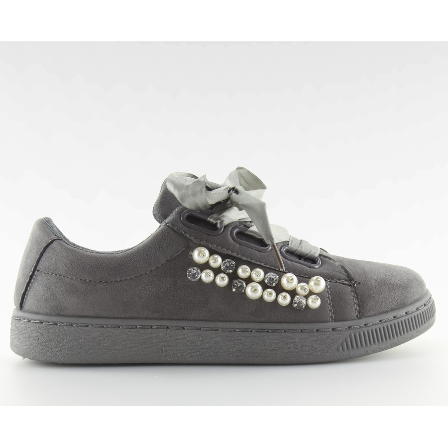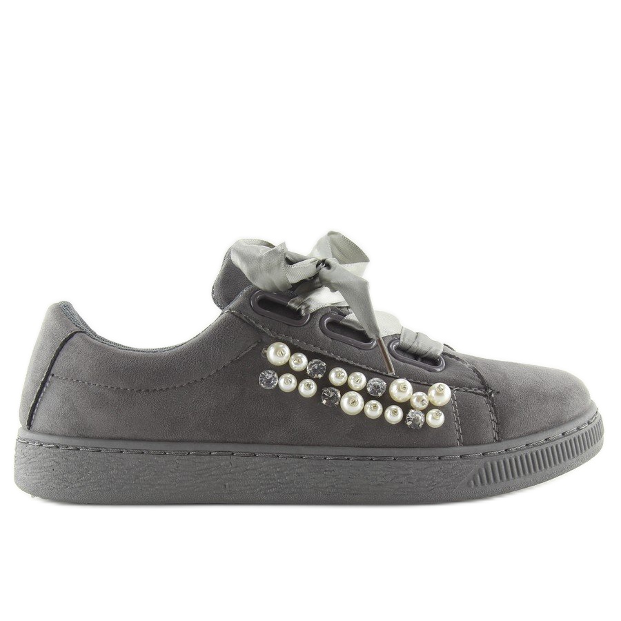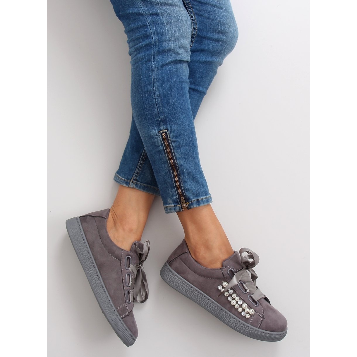Details: Graue Turnschuhe mit Perlen H99-11 Grau