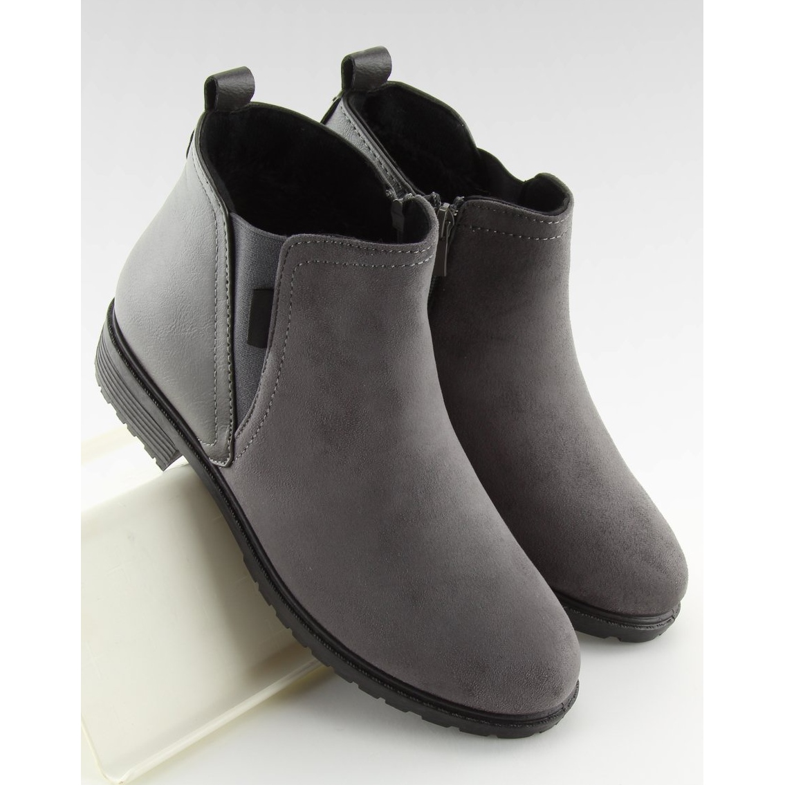 Entdecken Sie isolierte Chelsea-Stiefel für Damen in der eleganten grauen Farbe NB225P Grey, die die perfekte Ergänzung zu Ihrer Wintergarderobe sein werden. Diese Stiefel mit flacher Sohle aus einer Kombination aus ökologischem Leder und Öko-Wildleder bieten nicht nur einen stilvollen Look, sondern auch Tragekomfort an kälteren Tagen.