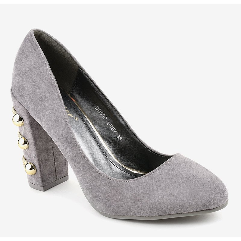 Entdecken Sie Eleganz und Komfort mit den hochhackigen Pumps DD59P aus grauem Wildleder. Dieses einzigartige Modell kombiniert eine klassische Form mit einzigartigen Dekorationen, die ihm einen einzigartigen Charakter verleihen. Der 10 cm hohe Blockabsatz zieht alle Blicke auf sich und macht diese Schuhe unübersehbar.