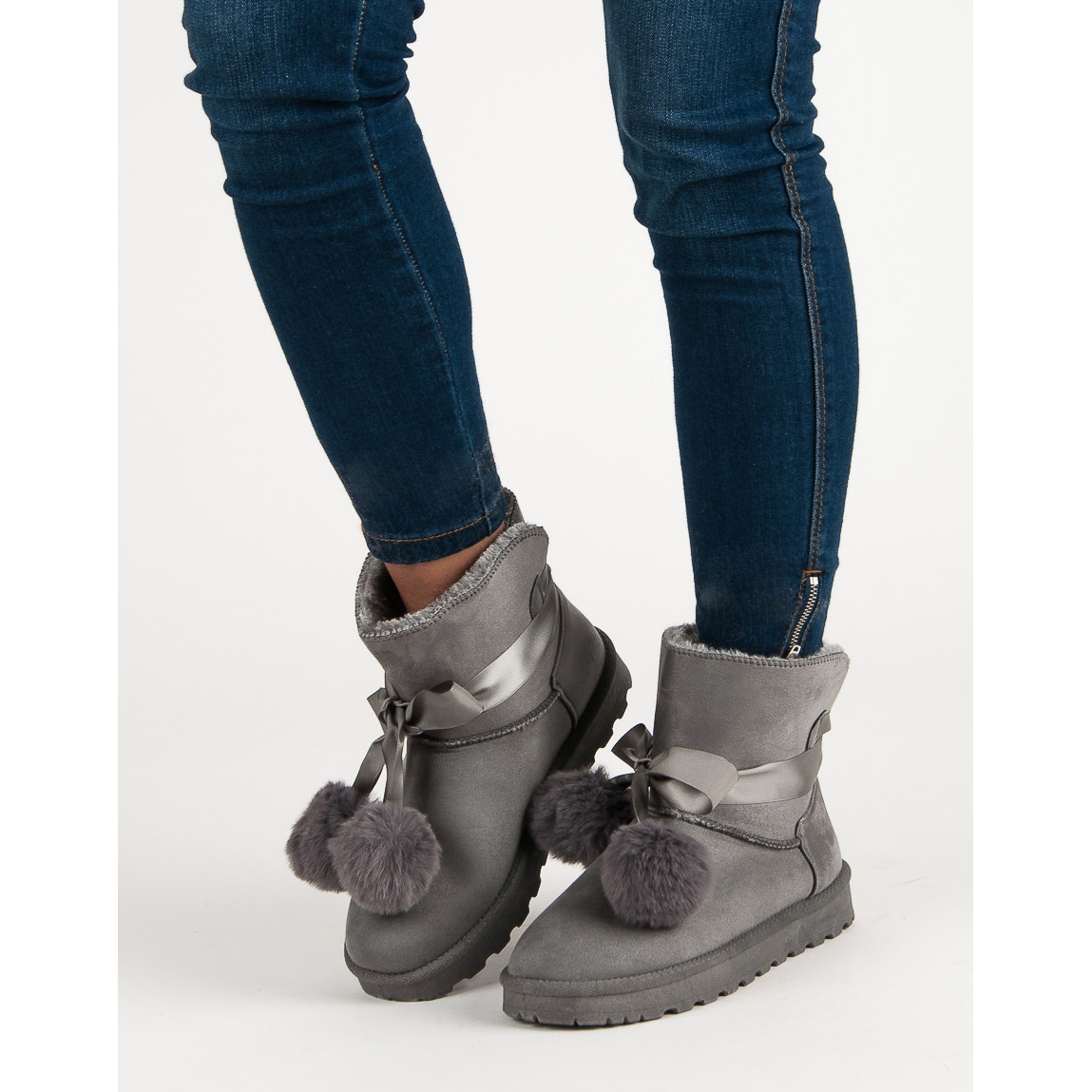 Details: Graues Mukluki mit Pompons