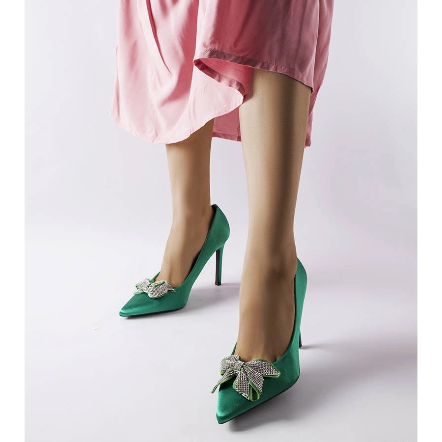 Green High Heels - ein Satin -Chic mit einem Damenbogen