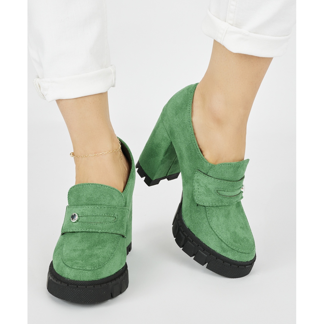Details: Grüne Damenschuhe mit hohen Absätzen