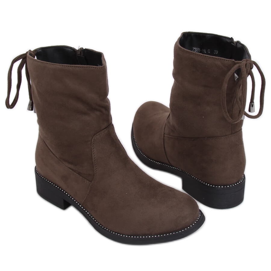 Die grünen Khaki-Stiefeletten 7378-PA Green für Damen sind die perfekte Wahl für Frauen, die Wert auf Mode und Komfort legen. Diese eleganten flachen Stiefel zeichnen sich durch ein modernes Design aus, das ins Auge fällt. Das weite, leicht geraffte Obermaterial und das dekorative Band auf der Rückseite verleihen ihnen einen einzigartigen Charakter, und der glänzende Besatz mit dezenten Zirkonen verleiht ihnen einen einzigartigen Glanz.