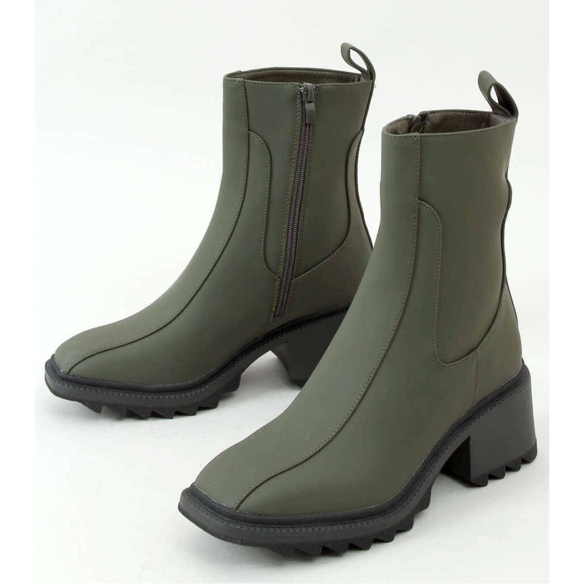 Entdecken Sie den einzigartigen Stil und den Komfort mit grüngrünen Stiefeln von Frauen von Inello. Diese eleganten, hohen Stiefel mit einer Höhe von 6 cm bieten nicht nur ein modisches Aussehen, sondern auch eine Stabilität beim Gehen. Ihr ursprünglicher Schnitt mit einer spektakulären, gezackten Sohle und quadratischen Zehen zieht ihre Augen an und macht sie zu einer großartigen Ergänzung zu jeder Stilisierung.