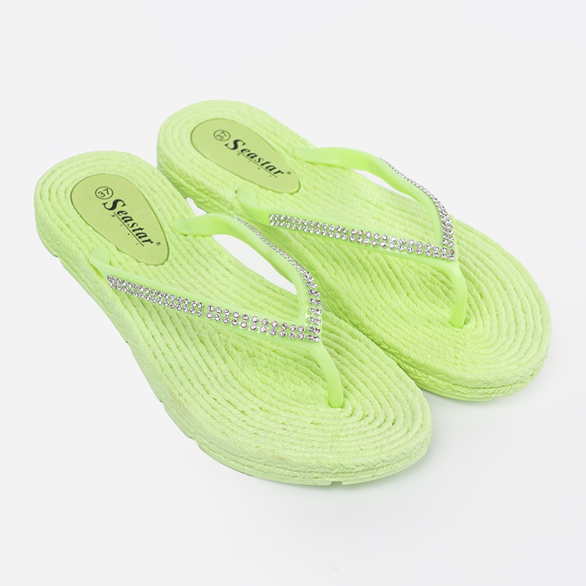 Wir präsentieren die extrem stilvollen Seastar Flip -Flops in einer modischen grünen Farbe, die Eleganz perfekt kombiniert. Diese eleganten Flip -Flops für Frauen wurden für warme Tage hergestellt, was die perfekte Ergänzung am Strand oder während der Sommerspaziergänge darstellte.