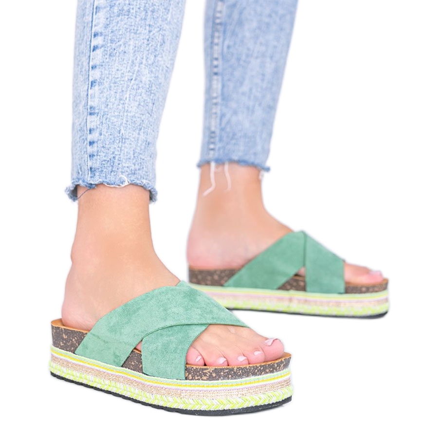 Inna marka Grüne Hausschuhe mit dekorativer Riri-Sohle