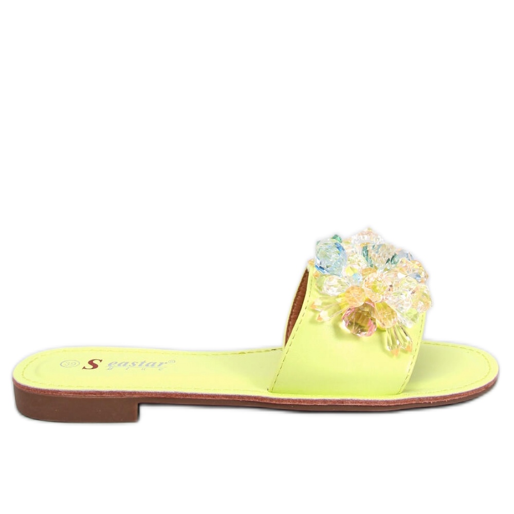Inna marka Grüne Hausschuhe mit farbigen Steinen