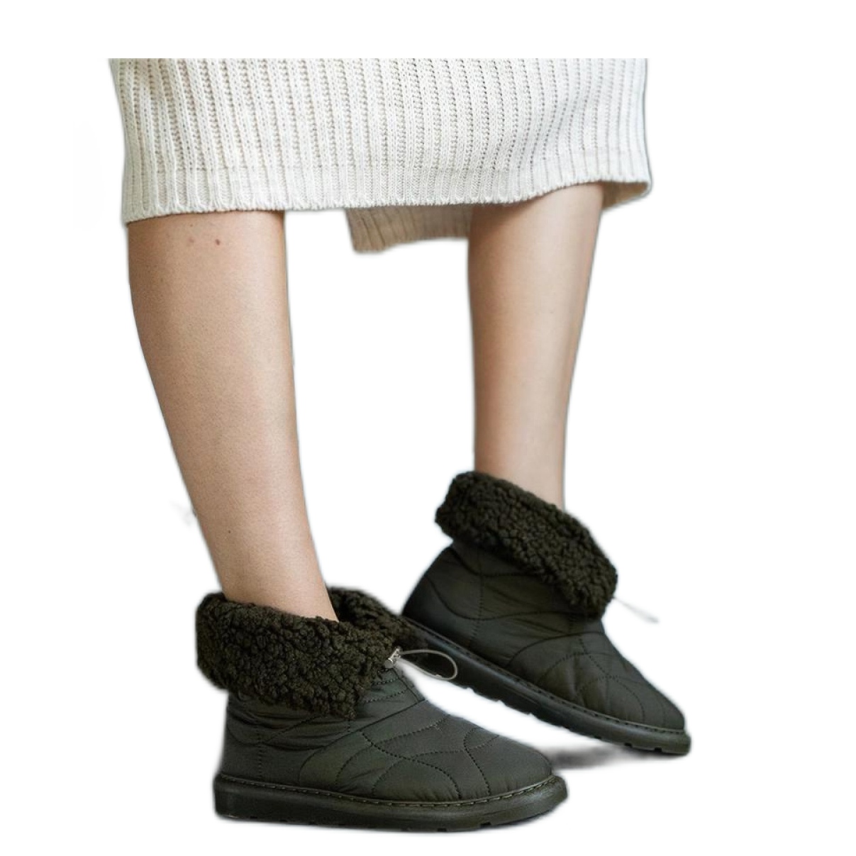 Das hohe Obermaterial und die Verwendung von haltbarem Außengewebe garantieren nicht nur den Schutz vor Kälte, sondern sorgen dank Isolierung auch Wärme. Darüber hinaus schützt die 3,5 cm hohe Plattform die Füße vor Feuchtigkeit, was unter Winterbedingungen von entscheidender Bedeutung ist. Solides Nähen sorgt für die Langlebigkeit dieses Produkts, was es für viele Jahreszeiten zu einer Investition macht.