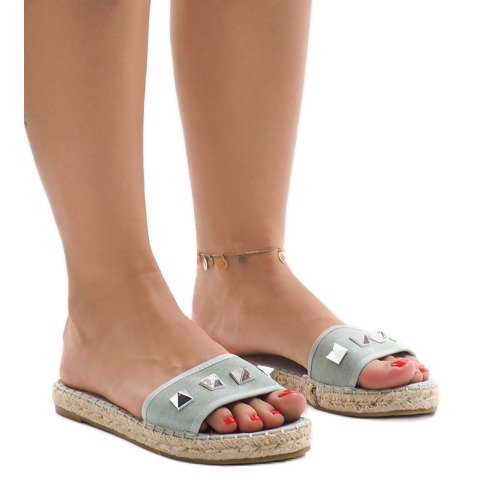 Details: Grüne Jeans-Hausschuhe mit Nieten 7087 mehrfarbig