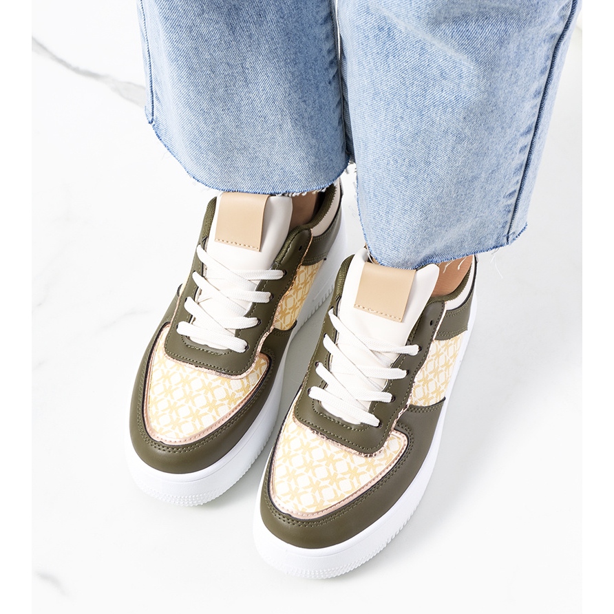 Lernen Sie die grünen Manal-Damensneaker in den Farbtönen Beige und Khaki kennen – ein unverzichtbares Element jeder Sommergarderobe! Diese modischen Sneaker zeichnen sich durch ein modernes Design und eine bequeme, hohe Sohle aus, die auch den ganzen Tag über für Komfort sorgt.