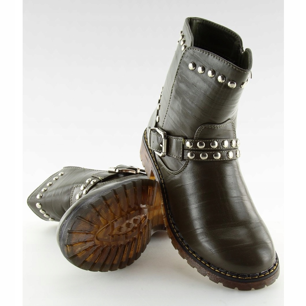 Entdecken Sie Stil und Komfort mit den Militärstiefeletten A-30 Green für Damen! Diese originellen flachen Stiefel vereinen modernes Design und Funktionalität und eignen sich perfekt für das alltägliche Styling. Auffällige Zierelemente wie Nieten und sorgfältige Nähte entlang der Sohle ziehen die Aufmerksamkeit auf sich und verleihen jedem Set Charakter.