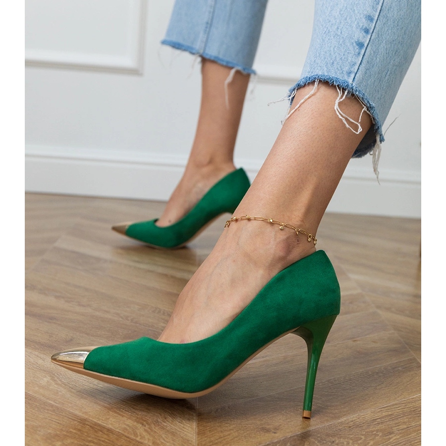 Die grüne Farbe, die von den neuesten Trends inspiriert ist, wird jede Stylisierung beleben, und die braune Kunststoffsohle sorgt für die Haltbarkeit und Stabilität. Der Schlupfverschluss ermöglicht das schnelle und einfache Anziehen, wodurch diese Pumpen nicht nur stilvoll, sondern auch praktisch sind.