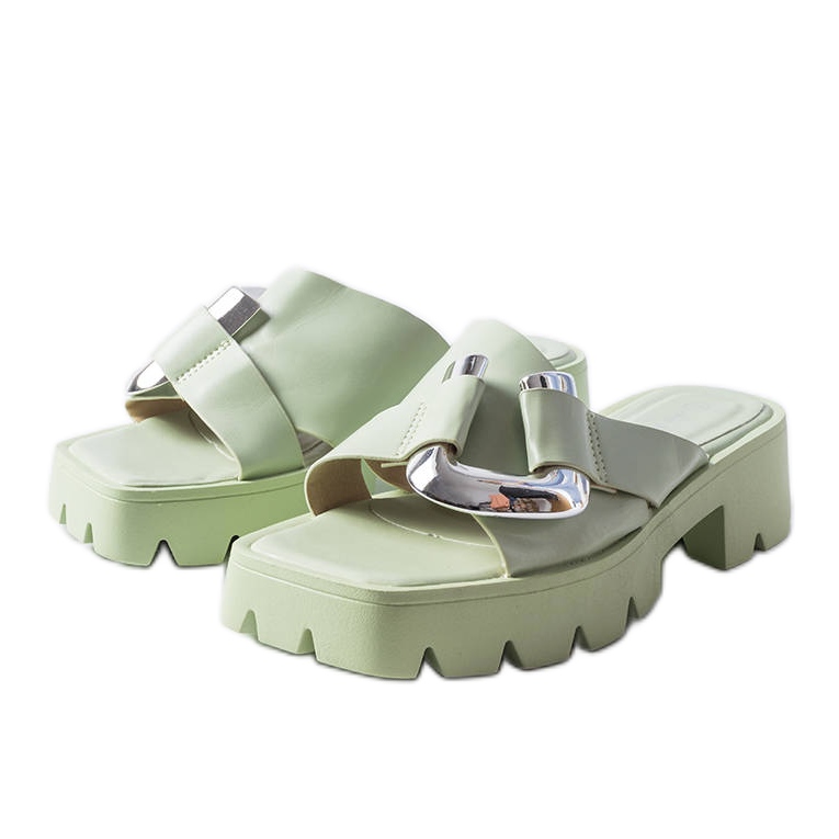 Inna marka Grüne Pantoletten auf der Traktorsohle von Carceri