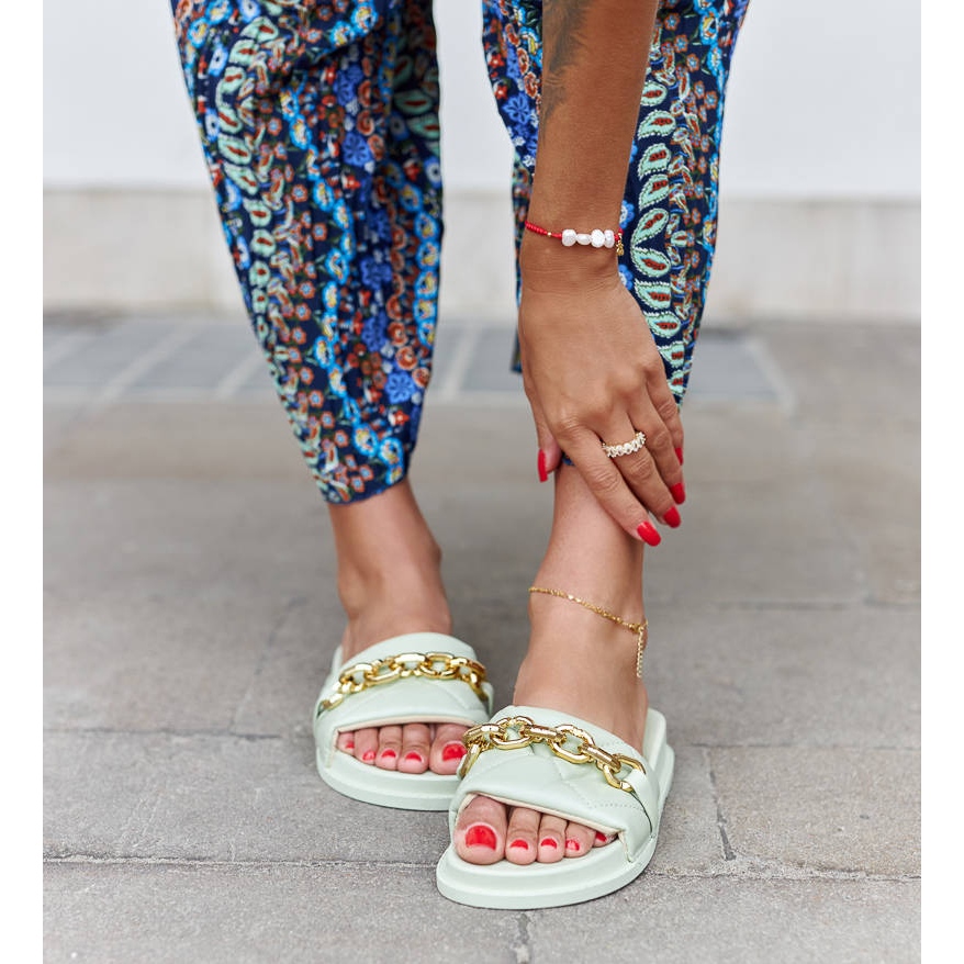 Inna marka Grüne Pantoletten verziert mit einer Borgo-Kette