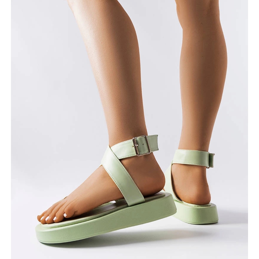 Phänomenale grüne Sandalen Beauchamp ist ein idealer Vorschlag für den Sommer - sie kombinieren einen minimalistischen, "klobigen" Look mit dem Komfort des täglichen Verschleißes. Breite Streifen und offenes Flip -Flop -Cut betonen die Leichtigkeit des Stylings, und 3,5 cm erhöht die Plattform Stabilität und verlängert die Figur subtil.