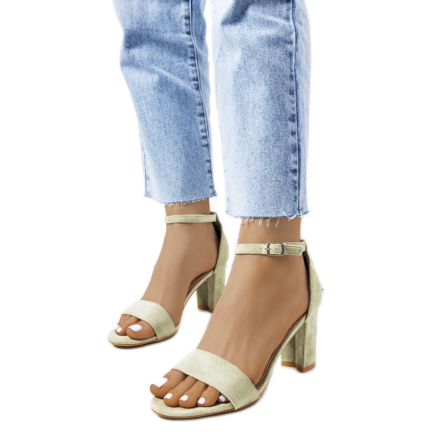 Inna marka Grüne Sandalen an einem Karella-Pfosten