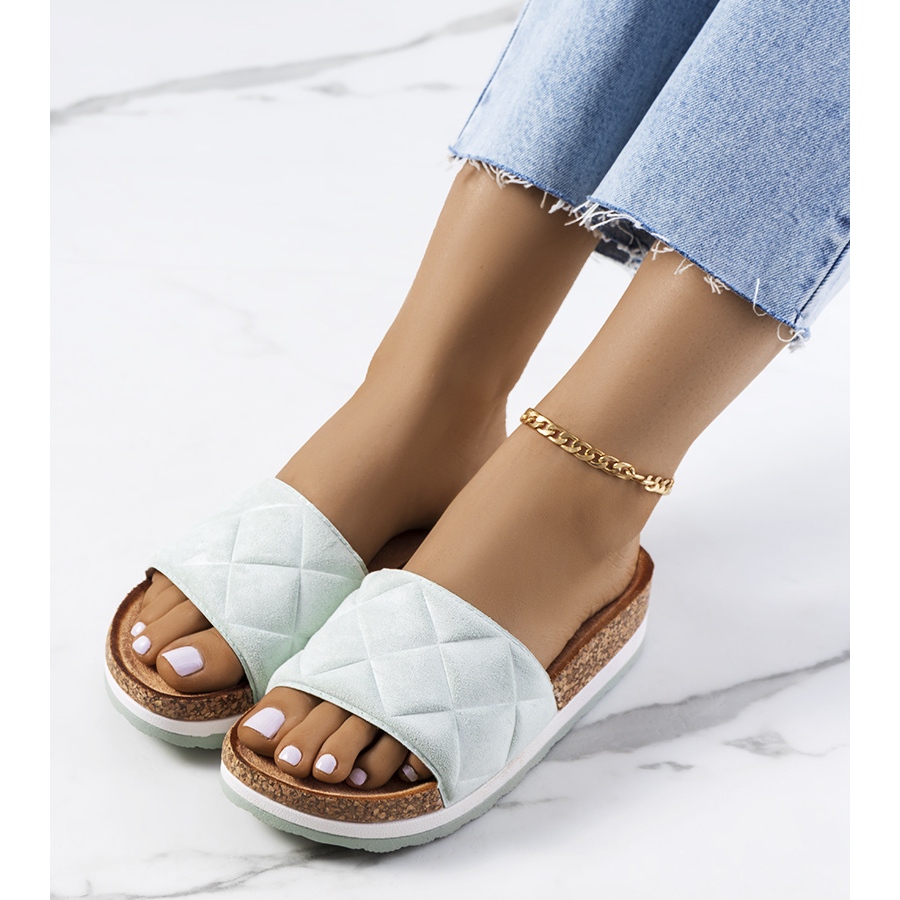 Grüne Galts-zehenstegsandalen mit Korksohle sind die perfekte Wahl für Sommertage und verleihen Ihrem Styling einen einzigartigen Charakter! Die aus hochwertigem Öko-Wildleder gefertigten zehenstegsandalen zeichnen sich durch ein wunderschönes Steppmuster aus, das nicht nur ins Auge fällt, sondern auch für höchsten Tragekomfort sorgt.
